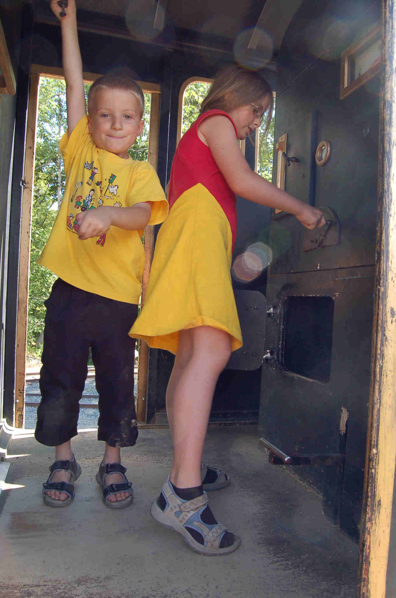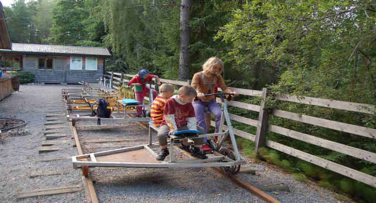 Nach einem kurzen Halt in der Samensiedlung Mittadalen geht es wieder abwärts. Wir sind froh, als wir endlich wieder Asphalt unter den Rädern haben und machen am erstbesten Badplatz, der des Weges kommt, für heute Schluss mit der Fahrerei. Es ist 16.30 Uhr geworden und die Kinder kommen nach ein paar Minuten entnervt von den Schnakenschwärmen (Stechmücken) und vom Nieselregen wieder ins Womo. Wir sehen einen DVD-Film und spielen nach dem Abendessen einige Runden Rommee ehe wir alle erschöpft ins Bett fallen. 12.08.2007 Nach wunderbar ruhiger Nacht starten wir morgens zum Meteoriteneinschlag ganz in der Nähe zwischen Funäsdalen und Tännäs. Wir bewundern den tiefen Krater, den der Meteorit vor ca. 2000 Jahren geschaffen hat. Danach geht es weiter über schwedische Landstraßen, an deren Rand wir viele Rentiere bewundern können. Abends machen wir einen Abstecher zum Bärenpark in Grönklit, allerdings nicht zum Bärenanschauen, sondern wir wollten auf dem Parkplatz davor übernachten. Wir werden von einem wahren Touristen"paradies" erwartet: Es gibt schlicht alles: Mietpferde, Mietquads, 4x4 Ausflüge, Outdoortischtennis, Mietlanglaufskis mit Rädern, einen Angelteich gegen Bezahlung, einen Campingplatz, Miethütten....... Ein Feriendorf mit über 200 Miethäusern, die gut von holländischen Touristen besucht sind. Wir können uns kaum vorstellen, dass wir unbehelligt auf dem Parkplatz übernachten dürfen und essen nur zu Abend, die Kids spielen ein wenig auf dem Spielplatz und dann flüchten wir an den Fluß Örealf beim Örtchen Skattungen auf einen Badplats. Laut unserem Reiseführer soll dort neben Mülleimern, Trockenklo auch eine Grillstelle sein. Dies ist jedoch nicht mehr der Fall, der Platz sieht verwildert aus, und diese Einrichtungen sind alle nicht vorhanden. Aber uns reicht ja auch die idyllische und ruhige Lage. Marc ist auf der Fahrt hierher bereits eingeschlafen und so spielen nur Birgit, Fabian und Heike Rommee, während ich diesen Bericht schreibe. 13.08.07 In der Nacht beginnt es wieder heftig zu regnen, und so beschließen wir am Morgen weiterzufahren. Es geht weiter auf dem Inlandsvägen (RV 45) über Orsa und Mora Richtung Karlstadt. Dort tanken wir Wasser und Diesel und kaufen ein. Über Mittag klart es auf und die Sonne läßt sich blicken. Ca 100 km später steuern wir bei Hanfors einen Badplats an. Die Kinder stürzen sich gleich ins Wasser um nach wenigen Minuten als tiefgekühlte Eiszapfen zurückzukommen. Inzwischen ist es 19.00 Uhr geworden und wir essen zu Abend und gehen alle früh zu Bett, von der vielen Fahrerei sind wir alle müde geworden. 14.08.07 Morgens weckt uns die Sonne und beim Leeren des Toilettentankes in das Badplatsklo entdecke ich, dass hier eine Mietstation für Draisinen ist. Wir erfahren, dass man hier insgesamt 13 km in einer Richtung auf einer stillgelegten Bahnstrecke fahren kann. Der Preis für 2 Draisinen und 4 Stunden beträgt 450 SEK, ca. 50 Eur. Wir richten ein Picknick und sausen los.