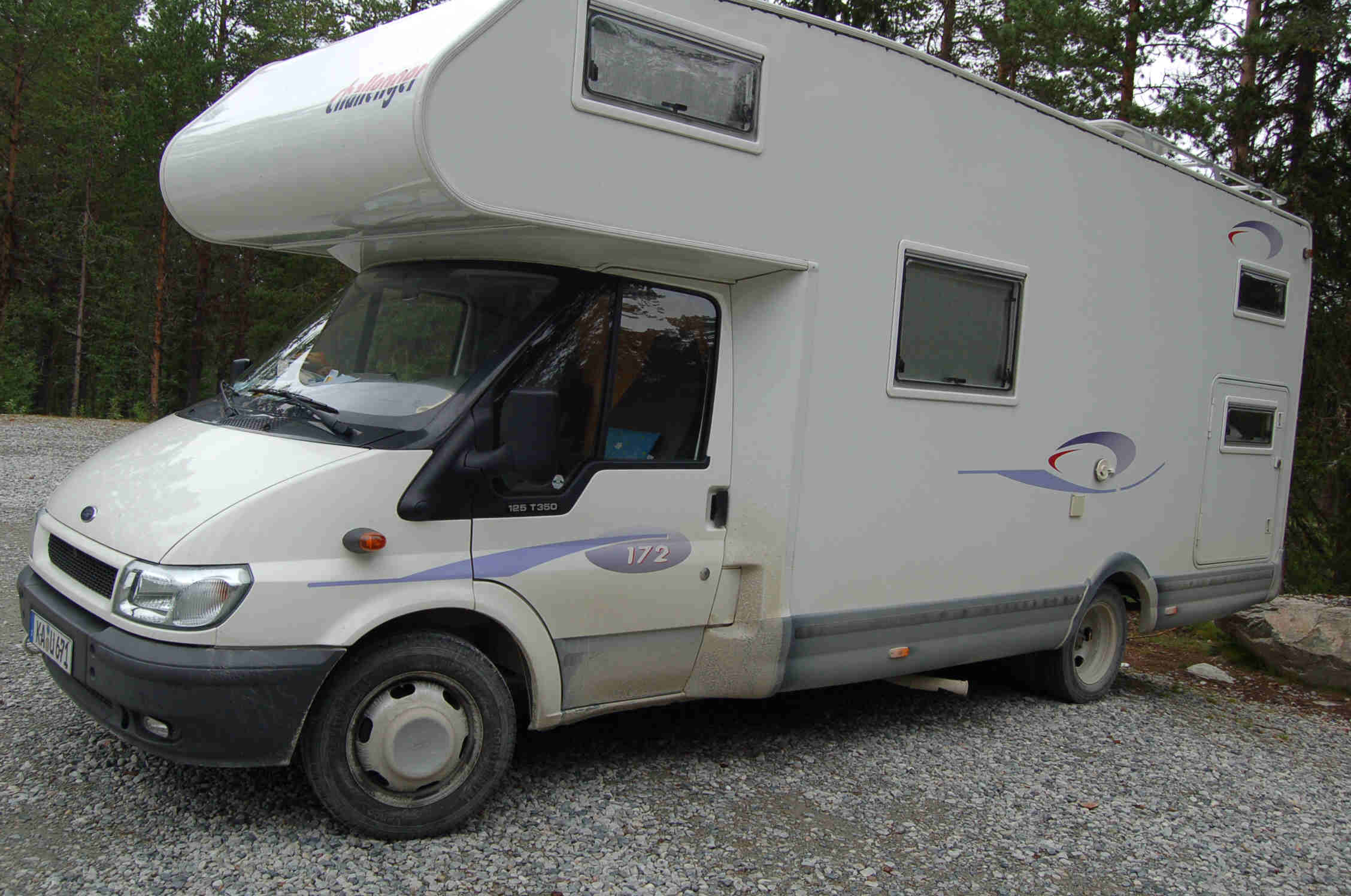 09.08.07 In der Nacht vom Vortrag beginnt es zu regnen und morgens sitzen wir beim Frühstück lieber im Wohnmobil während ein feiner Nieselregen auf das Dach fällt. Wir nehmen die "Naturstraße", d.h. die Schotter- und Erdpiste in Richtung Gädedde in Angriff. 20 km später sieht unser Womo entsprechend aus, es trägt bis zur Unterkante der Fenster eine braune Bauchbinde aus Lehm. In Gädedde tanken wir Diesel und Wasser, beide Tanks waren nahezu leer.
