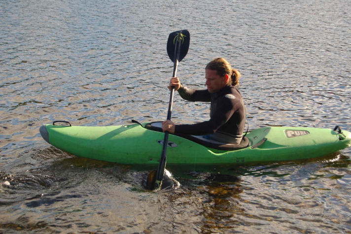 Wir nutzen den schönen Stellplatz und das gute Wetter aus, Klaus fährt nochmals Boot, Kirstin geht schwimmen und die Kids toben am Platz.