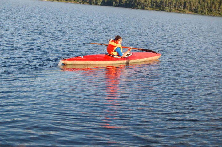 Das Wetter ist durchwachsen, wir nutzen Regenpausen um zu baden und mit dem Paddelboot zu fahren. Die Jungs versuchen zu angeln, leider haken sich die Blinker auf dem Boden fest und 2 mal reißt die Schnur ab. Plötzlich ist an der älteren Angel die Öse für die Schnurführung ab, die andere Angel hat einen Schnurhudel. So bin ich ununterbrochen damit beschäftigt diese Probleme zu lösen.