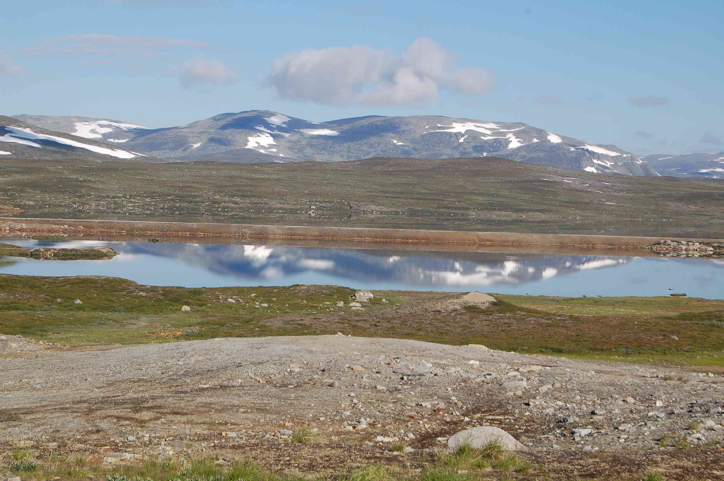 Nach einer ausgiebigen Rast an der Schutzhütte sind wir gegen 16.30 Uhr zurück am Womo. Was nun tun, wo wollen wir übernachten? Auf dem Parkplatz sind uns zu viele Mücken, daher wollen wir unser Glück am vorderen Parkplatz am Fluss versuchen. Leider sind aber auch dort 1000 von Schnaken. Der gemeinsame Rat beschließt daher auf den ca. 800m hohen Fjell zu fahren, in der Hoffnung, dass dort keine Schnaken sind. Leider stellt sich diese Hoffnung als zu mindest teilweise unberechtigt heraus, auch hier oben sind - wenn auch nicht so viele- Schnaken. Egal, wir bleiben und gehen ins Bett.