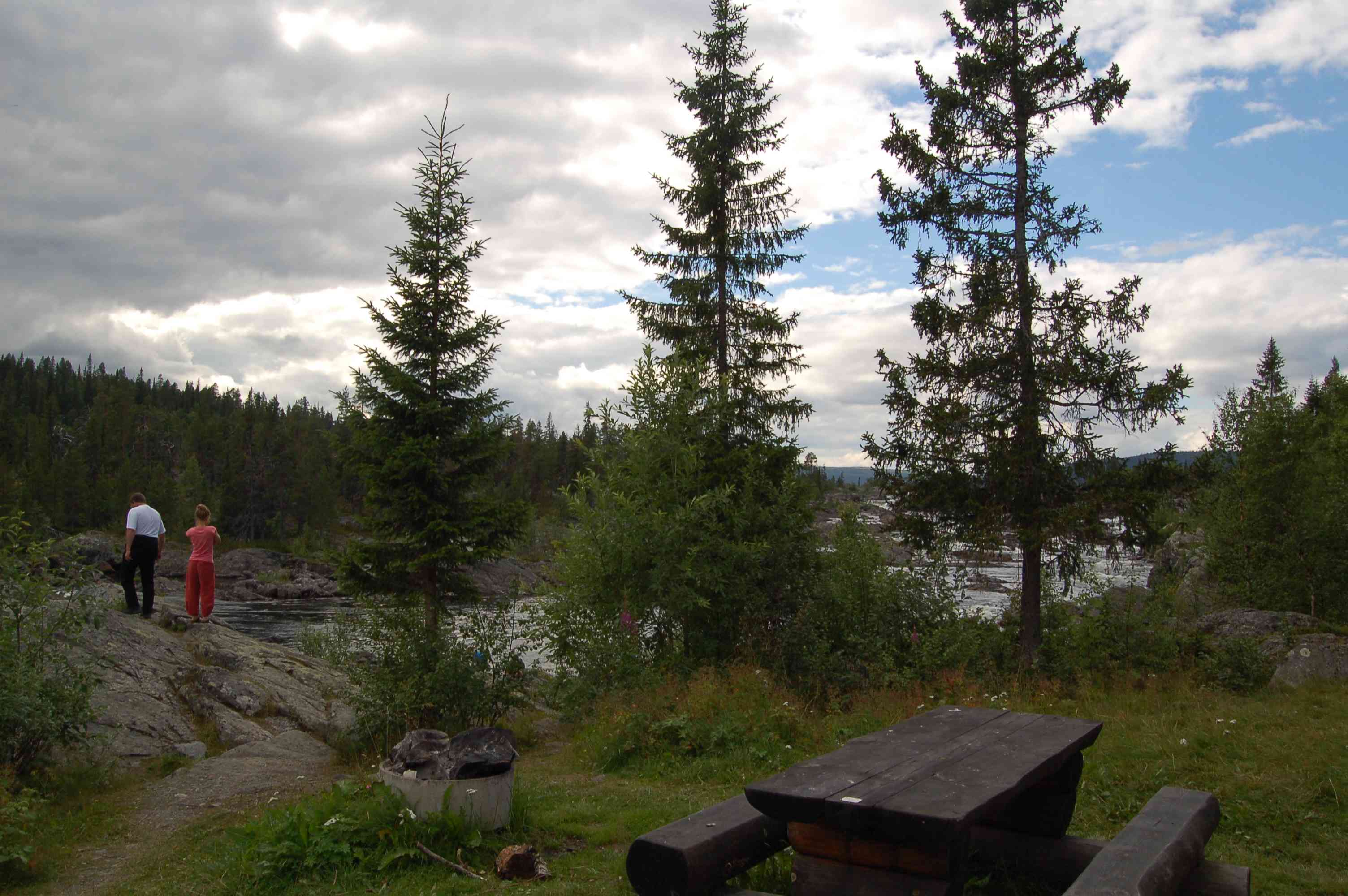 Nach dem Frühstück fahren wir ohne Zankers weiter. Klaus möchte Wildwasser-Kajak fahren, wir verabreden uns auf einem Badeplatz in Sala. Nach dem nächtlichen Regen steigert sich das Wetter und am Nachmittag erreichen wir glatte 25 Grad C bei 19,5 Grad C Wassertemperatur.