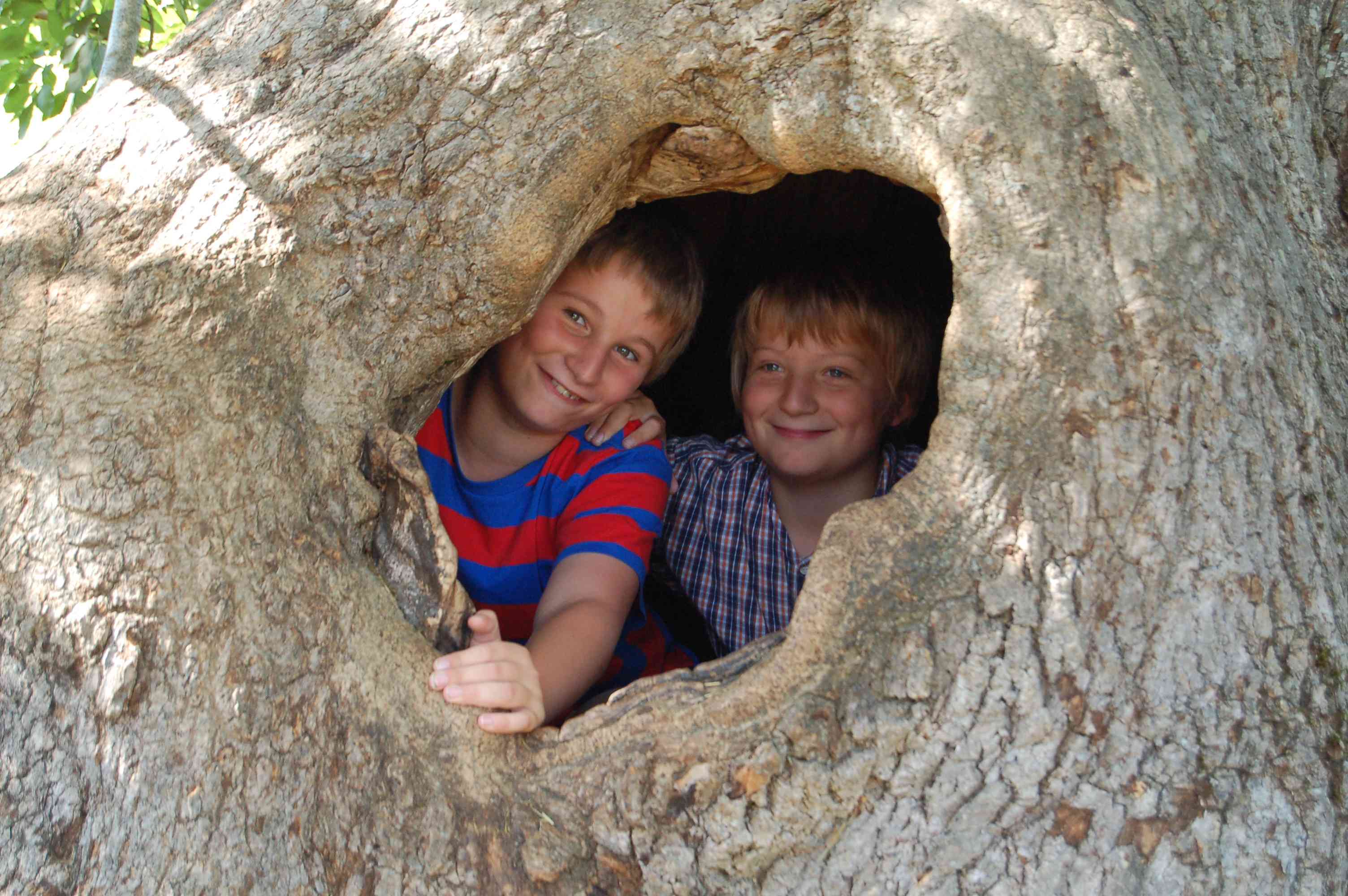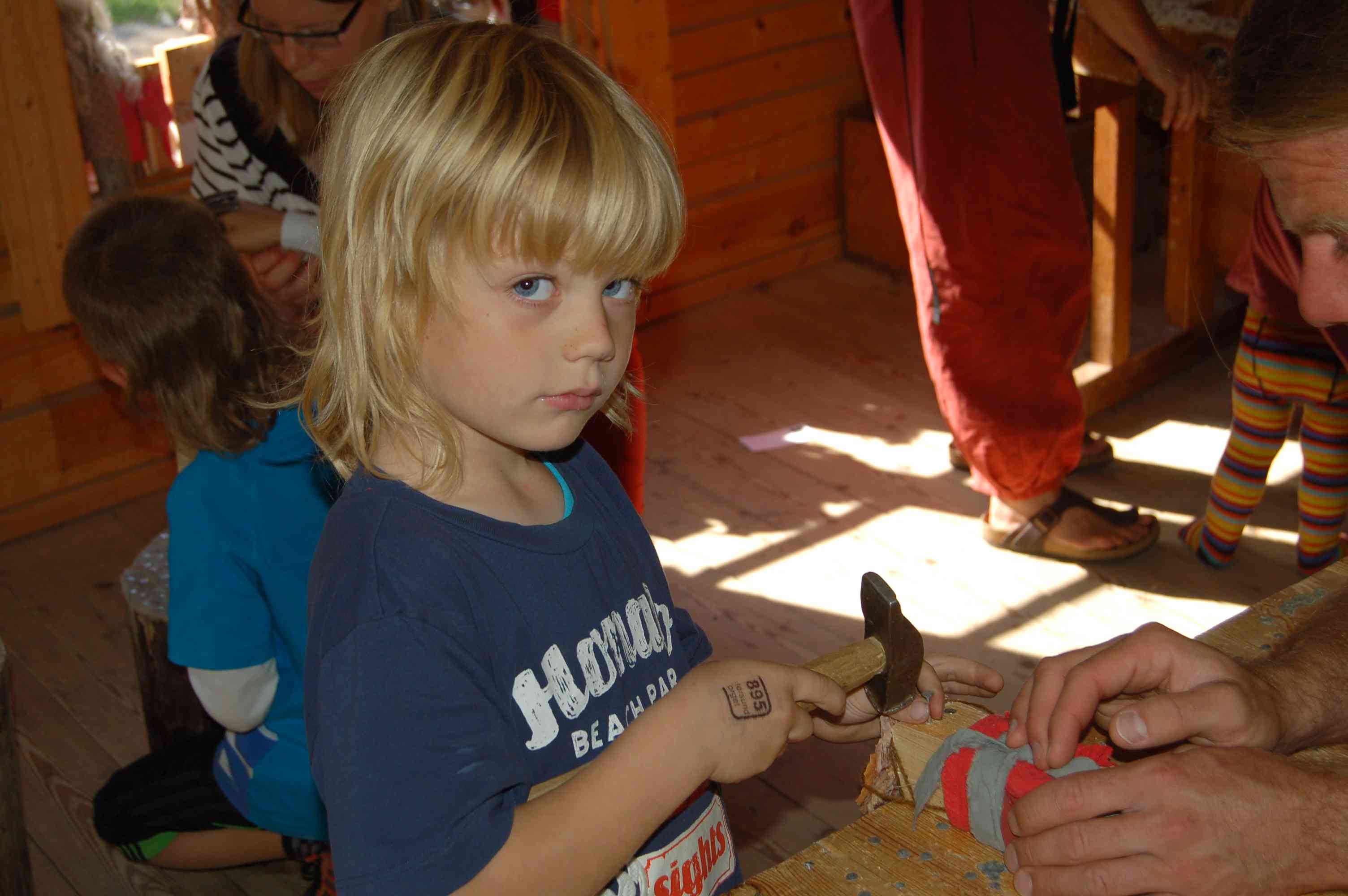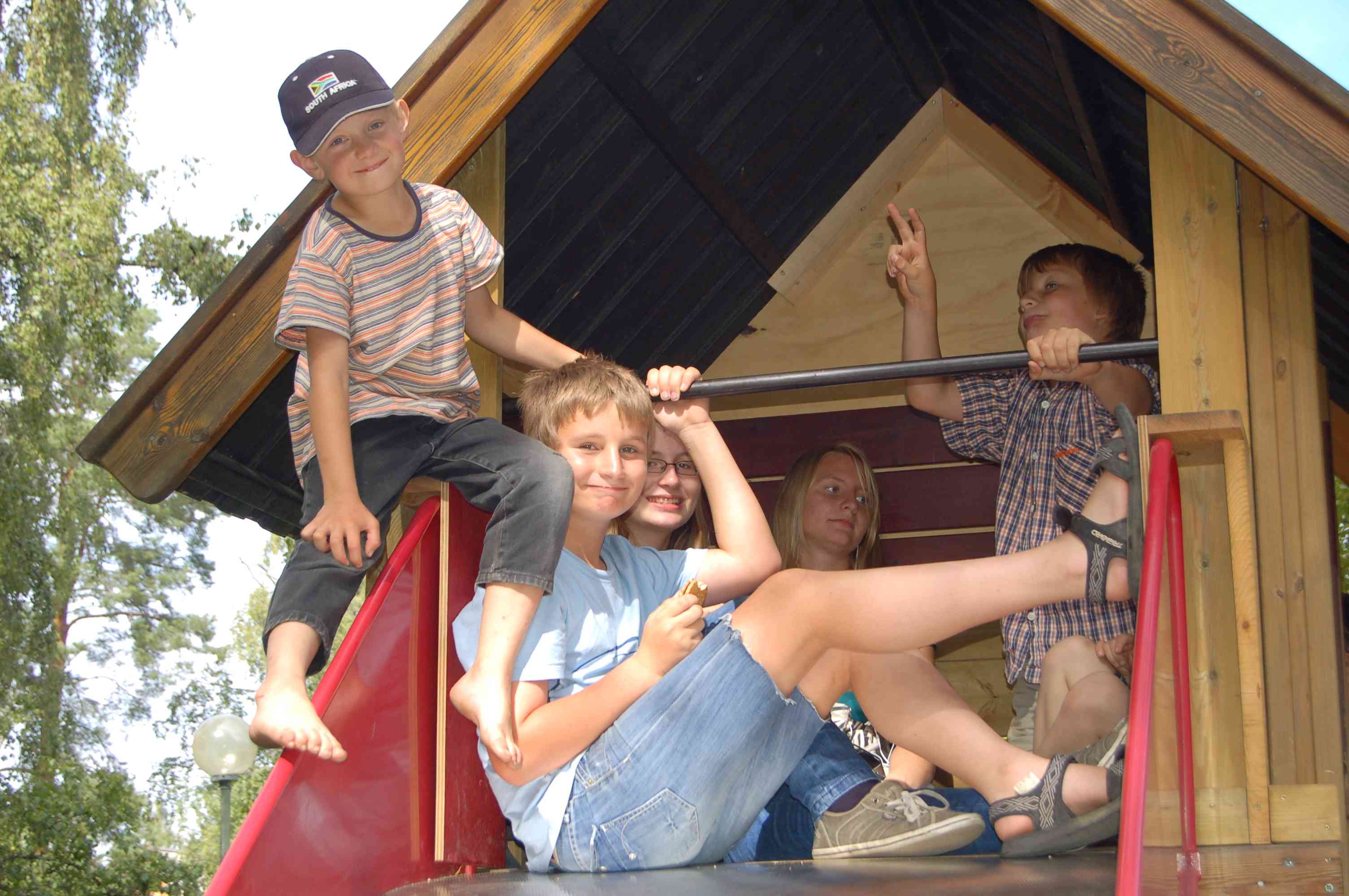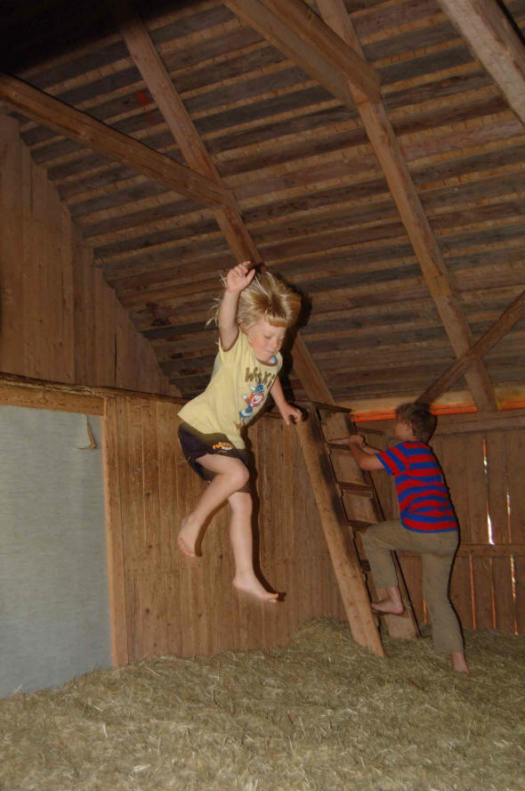 Nach der Besichtigung fahren wir weiter nach "Bullerbü", die Kinder klettern in den hohlen Baum und springen im Schuppen ins Heu.