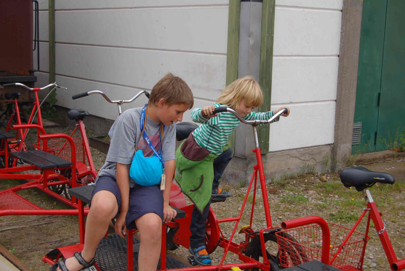 Ok, was nun tun, hier auf dem Parkplatz den ganzen Tag verbringen ist nicht das Wahre. Also verteilen wir uns 6 auf die beiden Wohnmobile von Klaus und Christian und fahren zurück nach Uddeholm. Gegen 12.00 Uhr treffen wir dort ein und mieten die letzen 5 Drasinen. Um 13.30 Uhr können wir fahren. In der Wartezeit essen wir zu Mittag. Danach geht es zu lustigen Draisinnentour, die von allen als zu kurz empfunden wird aber viel Spaß macht.