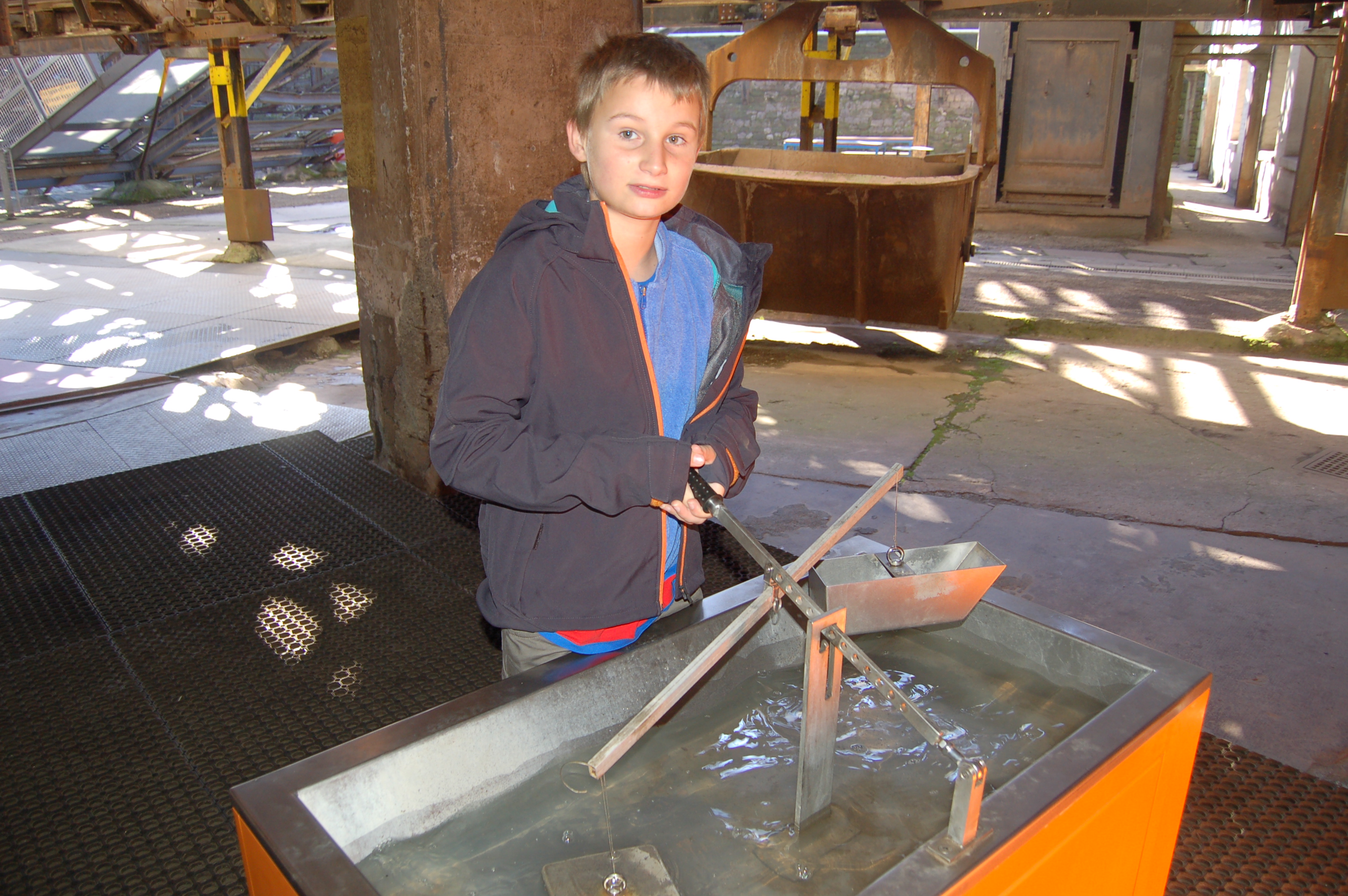 Den Kinder gefällt das Ferrodrom, dort können sie selbst an Maschinen und Installationen Hand anlegen um die physikalischen Gesetze der Verhüttung von Eisenerz und Eisen bzw. Magnetismus etc. selbst im wörtlichen Sinne zu begreifen. Sie sind begeistern und nicht davon weg zu bekommen, Also setzen wir die Besichtigung ohne die Jugend fort. Wir werden uns am Womo wieder treffen.