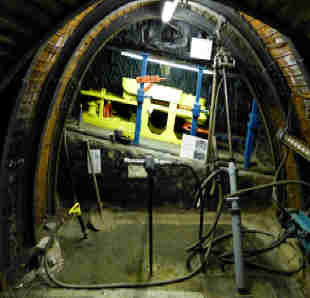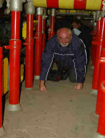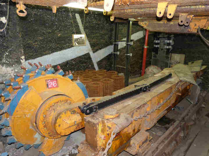 Nach der Besichtigung des Museums im ehemaligen Förderturm bis in 55m Höhe geht es unter Tage. Der Anfang ist so niedrig, dass Michael mit seinen 1,95m auf allen vieren kriechen muss.