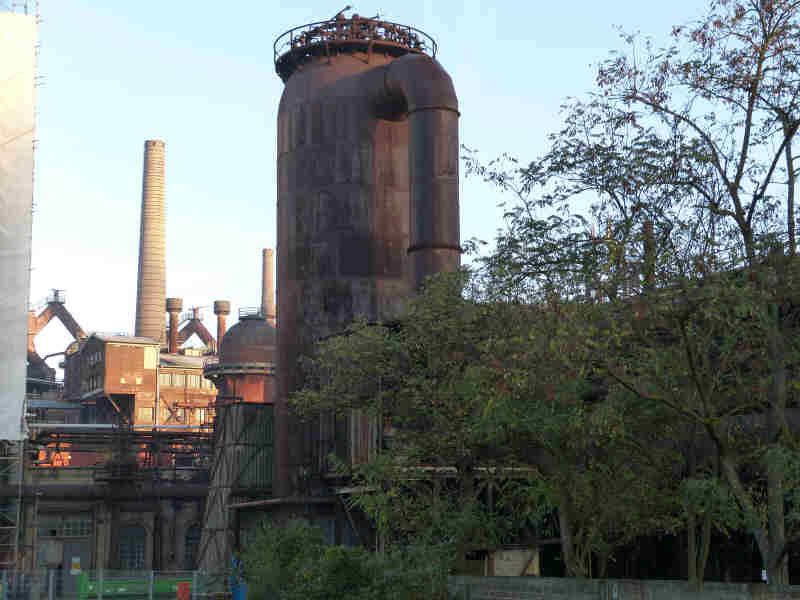 Morgens hat sich das Wetter gebessert, es regnet nicht mehr und sogar die Sonne lacht durch einzelne Wolken. Um 10 Uhr öffnet die Völklinger Hütte, eine riesige beeindruckende Anlage, die für mehr als 100 Jahre Deutschlands größte Eisenhütte war. Als Vorbereitung haben wir uns am Abend aus dem Internet den Audioguide herunter geladen und auf unsere Handies gespielt. Das war auch gut so, denn die Erklärungen vor Ort fallen etwas dürftig aus. Trotzdem sind wir beeindruckt und nach mehr als 3,5 stündiger Besichtigung erschöpft von den Eindrücken. Es geht bis nahezu zur Spitze der Hochöfen auf 35m Höhe und ca. 2 Stockwerke tief in die Erde unter die Hochöfen. Wir erfahren, dass in der Hütte eine Zeitlang auch Frauen beschäftigt waren. Ihre schwere körperliche Arbeit war das Entladen der Erzloren von Hand. Sie wurden für diese Arbeit schlechter bezahlt als die männlichen Kollegen und viele mussten die harte körperliche Arbeit auf sich nehmen, um die Familien zu ernähren. Die Hüttenarbeiter nannten sie halb spöttisch, halb hochachtungsvoll die "Erzengel".