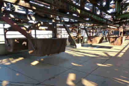 Den Abschluss bildet die sog. Gebläsehalle. Die riesigen Windmaschienen sehen aus, wie aus dem Dampfzeitalter übrig geblieben, beeindruckend wie die ganze riesige Anlage.