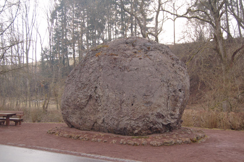 Nach der Theorie der Wissenschaft handelt es sich um einen Gesteinsbrocken, der die Kraterwand herunterrollte und dabei Lava an sich band, ähnlich einem Schneeball. Der Brocken landete wieder im Schlot, wurde erneut herausgespieen, rollte wieder die Kraterwand herab, band weitere Lava an sich, fiel erneut in den Schlot wurde wieder ausgespieen etc. Irgendwann einmal wurde er dann endgültig ausgespuckt.