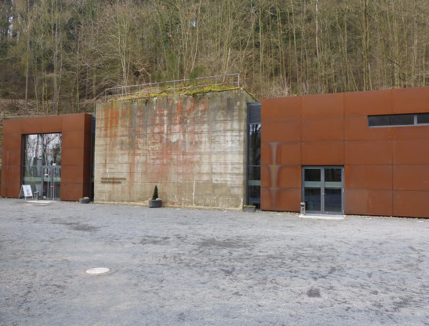 Wir sind deshalb etwas in Eile, da Michael, der mit seinem Womo mit uns fährt und um 14 / 14.30 Uhr bei seiner Tante in Ahrweiler zum Kaffeetrinken sein möchte. Nach der 1,5 stündigen Führung (Eintritt Erwachsene je 8 Euro, Jugendliche ab 12 Jahren 3,5 Euro, darunter frei, Fotografieren 2,50 Euro extra) treten wir aus dem Bunker mal wieder in Schneegrieseln.