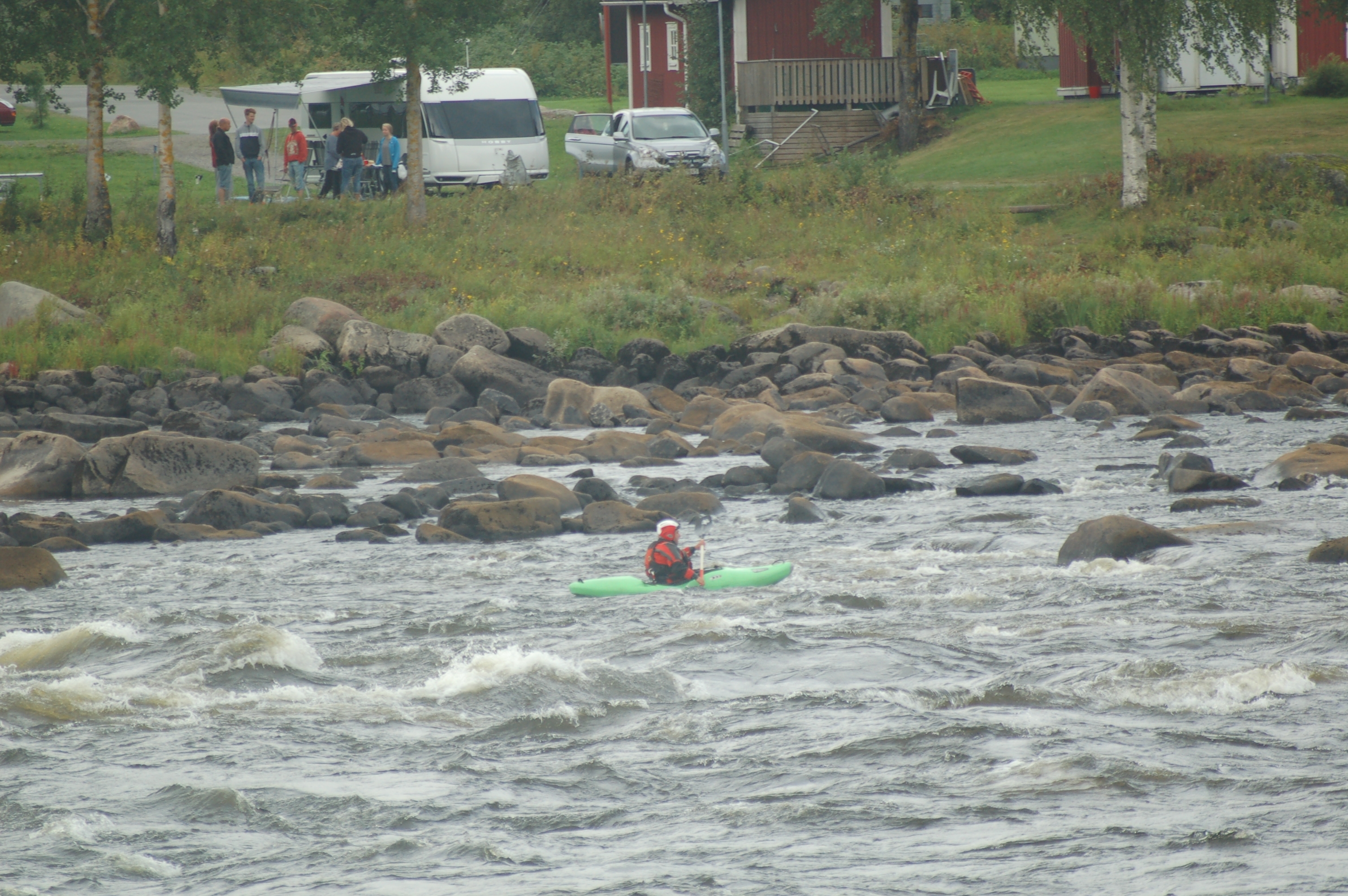 Mittwoch, 14.8.13, Klaus, Anna und Christian fahren Wildwasser- Kanu