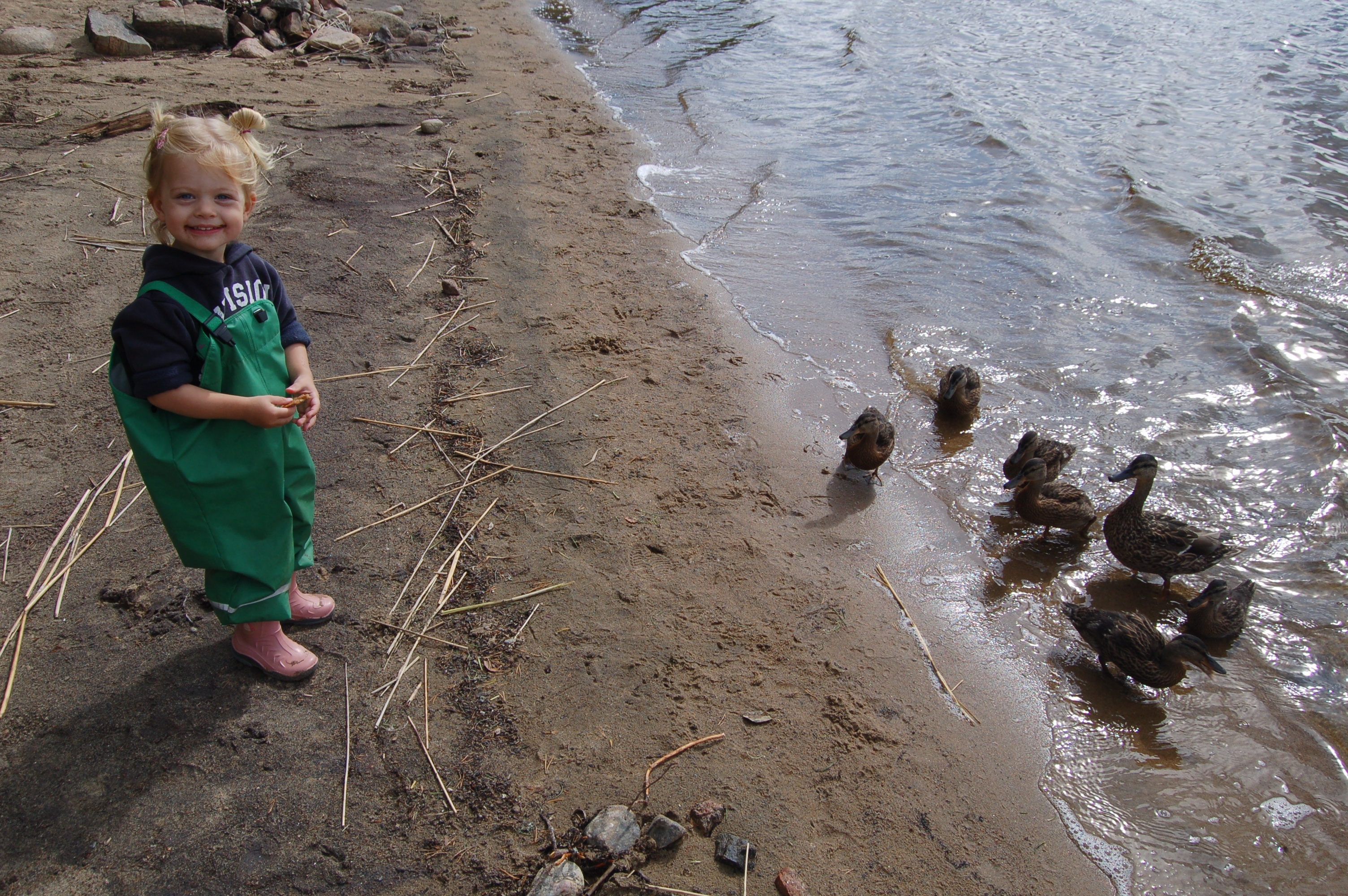 Ich komme hinzu und untersage Theo und Lars das Steinewerfen. Theo fehlt jedes Verständnis, er ist sich weder der Gefahr noch dem Erfolg seines unabsichtlichen Tuns bewusst. - Nur wenige Zentimeter daneben und er hätte Edda, seine kleine knapp 3 jährige Schwester getroffen und das alles in unmittelbarer Ufernähe.