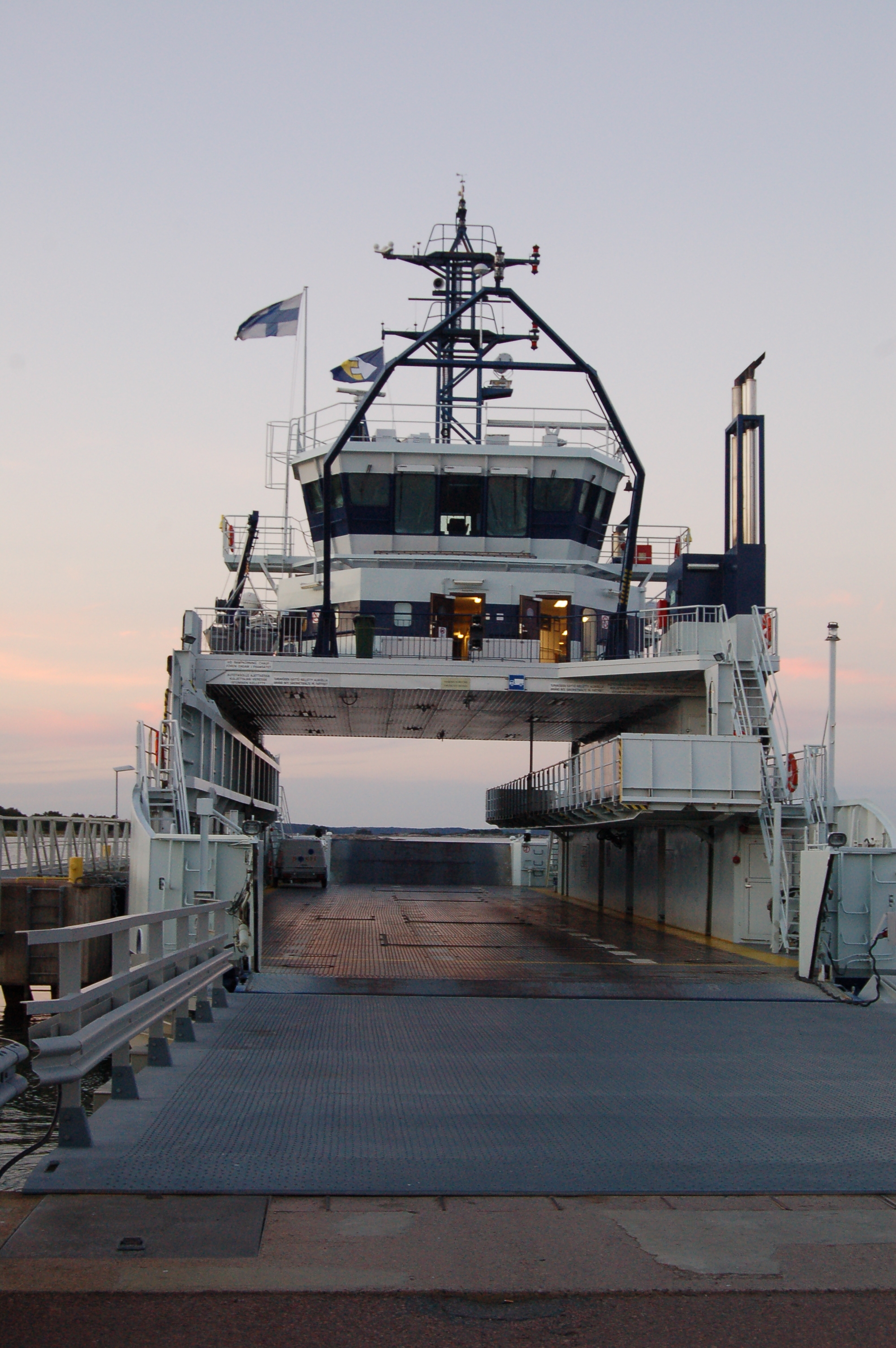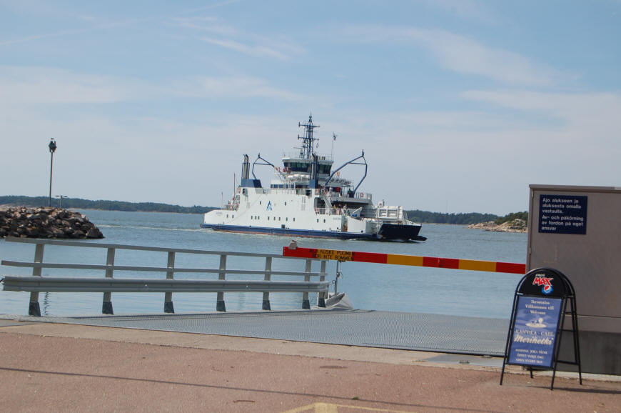 Um 4.55 Uhr klingelt gnadenlos das Handy um uns zu wecken. Wir stehen auf und frühstücken. Danach geht es zum Hafen, der ja nur 3 Minuten entfernt ist. Dort ist schon eine lange Schlange! Wir reihen uns ein, den Gully nutzen wir um das Abwasser los zu werden, die aufgestellten Mülleimer sind auch nützlich. Es sind nur ca 10 Wohnmobile, die auf die Fähre fahren. - Unglaublich, da wir ja schon mit 3 Fahrzeugen anreisen. - Vom Boot kommen aber auch nicht viel mehr, Finnland scheint tatsächlich ein wenig besuchtes Womo-Reiseziel zu sein.