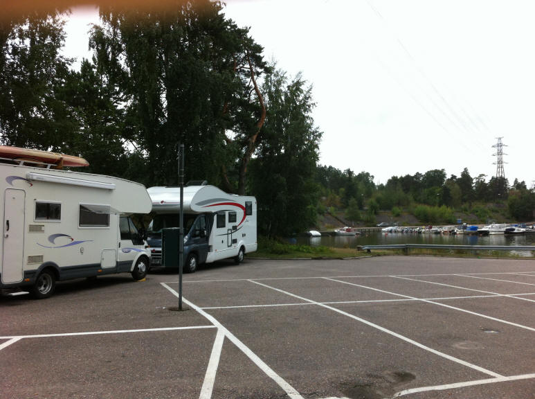 Danach fahren wir Wasser und Diesel tanken und einkaufen. Schwierig stellt sich mal wieder die Entsorgung des Klotanks dar. Wir finden nichts. Dann geht es auf zur Schärentour, wir fahren über Lumo auf die erste Schäre. Inzwischen ist es bereits später Nachmittag geworden und wir wollen für heute nicht weiter. Der Stellplatz aus dem Schulz vermag nicht zu überzeugen, er ist relativ stark durch Anwohner belegt, außerdem stehen dort die Mülleimer. Also suchen wir eine Alternative. Das stellt sich auf der kleinen Schäre, die gerade einmal 5km lang ist, als schwierig dar. Wir finden einen idyllischen kleinen Bootshafen und richten uns dort ein. Nach ca. 1 Stunde kommt ein älterer Mann auf einem Quad und erklärt uns freundlich aber bestimmt, dass wir hier nicht übernachten dürfen. Wir sehen uns den Fähranleger auf der anderen Inselseite an, evtl. kann man dort stehen? Leider nein, dort gibt es nur die Straße, nicht einmal Parkplätze. Also fahren wir schweren Herzens zurück zum ersten Platz und stellen uns neben die Mülleimer.