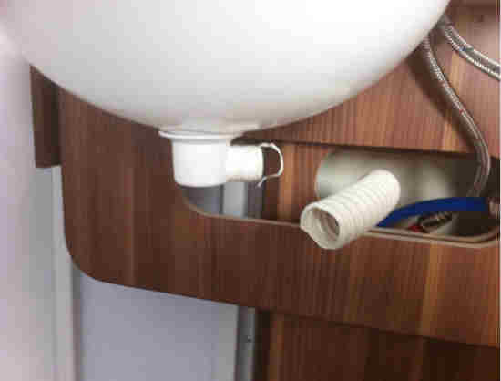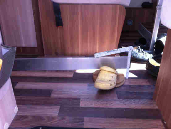 Demontage der Verkleidung ergab das: Es fehlte schlicht und einfach die passende Spiral-Schlauchschelle. Unser Händler brauchte für die Lieferung dieser Schelle länger als eine Woche und war nur durch die Drohung ansonsten das Womo zu einer Werkstatt zur Reparatur zu bringen, zur Initiative zu bewegen. Seine Begründung warum das so lange dauere, war Eura habe ihm noch keine Garantiezusage erteilt. (Für einen 2 Euro Artikel, den ich noch kostenfrei für ihn montierte) |