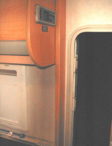 Bordanzeige im Original Holzteil neben der Tür unter den Kühlschrank durch die
